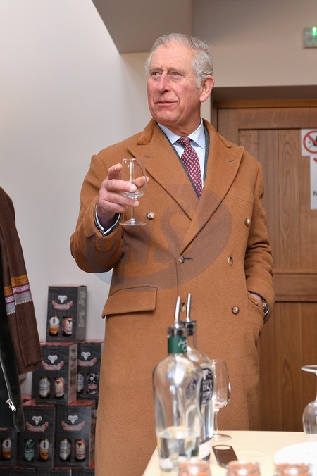 Ksiaze Karol degustuje wodke podczas wizyty w Marlborough