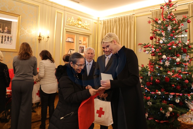 Ksiezna Charlene na swiatecznym spotkaniu w Czerwonym Krzyzu
