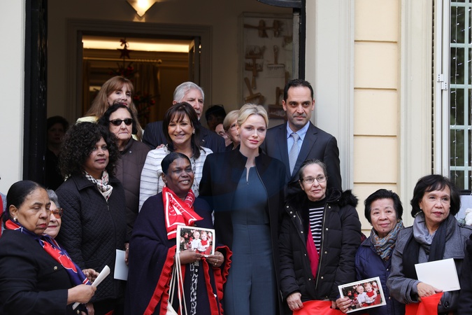 Ksiezna Charlene na swiatecznym spotkaniu w Czerwonym Krzyzu