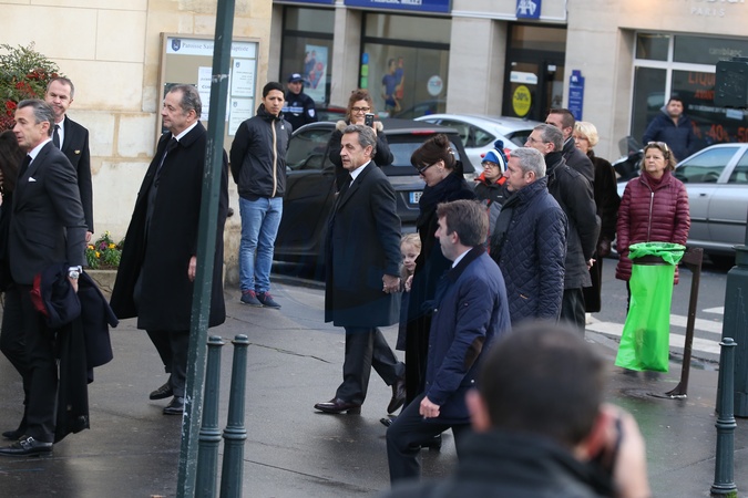 Nicolas Sarkozy i Carla Bruni z corka Giulia na pogrzebie matki Sarkozy'ego