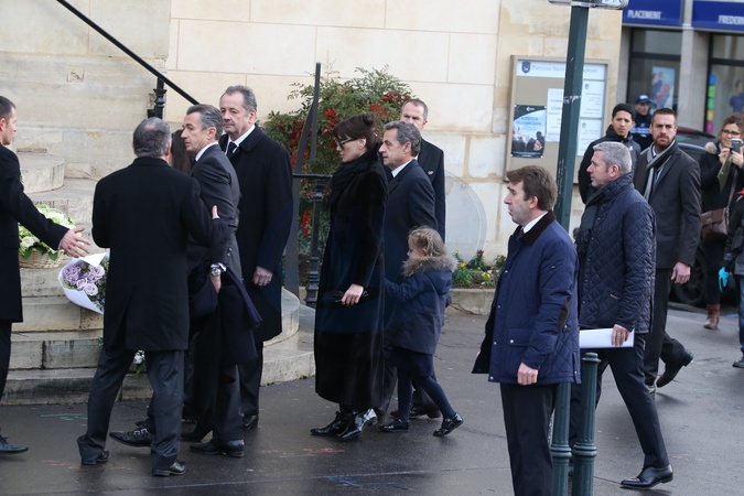 Nicolas Sarkozy i Carla Bruni z corka Giulia na pogrzebie matki Sarkozy'ego