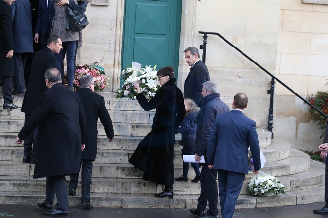 Nicolas Sarkozy i Carla Bruni z corka Giulia na pogrzebie matki Sarkozy'ego