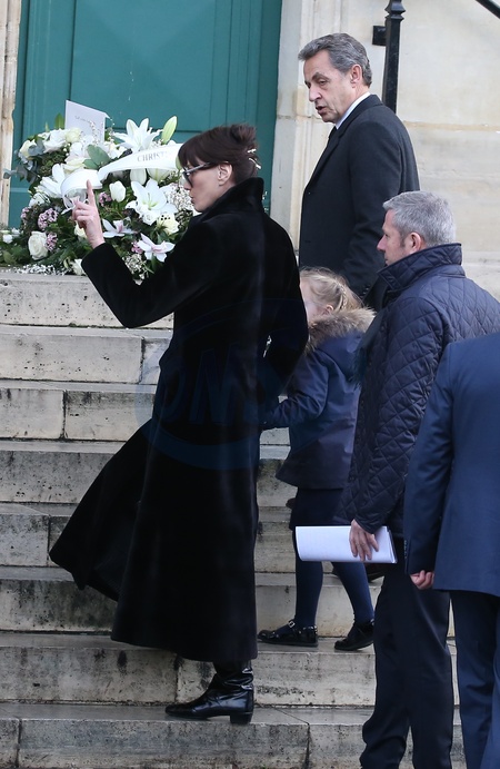 Nicolas Sarkozy i Carla Bruni z corka Giulia na pogrzebie matki Sarkozy'ego