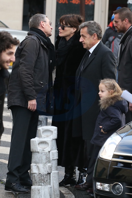 Nicolas Sarkozy i Carla Bruni z corka Giulia na pogrzebie matki Sarkozy'ego
