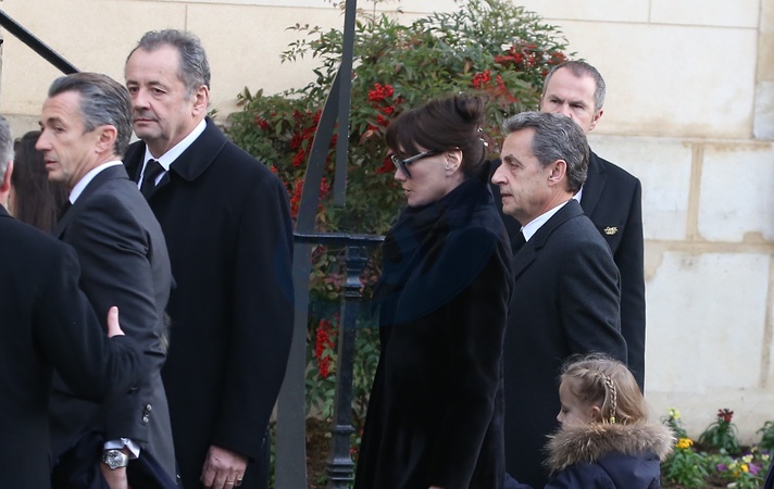 Nicolas Sarkozy i Carla Bruni z corka Giulia na pogrzebie matki Sarkozy'ego