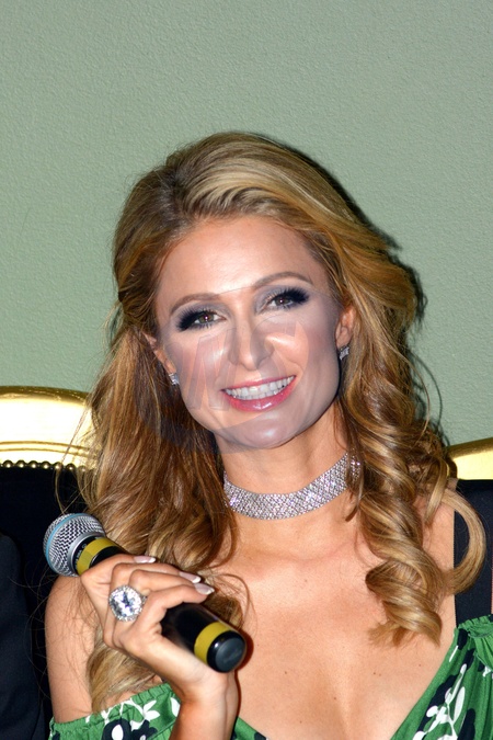 Paris Hilton w zielonej sukience na imprezie w Moskwie