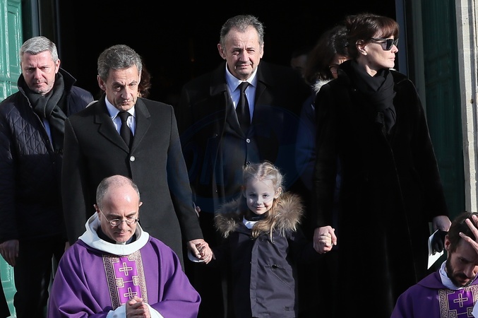 Nicolas Sarkozy i Carla Bruni z corka Giulia na pogrzebie matki Sarkozy'ego