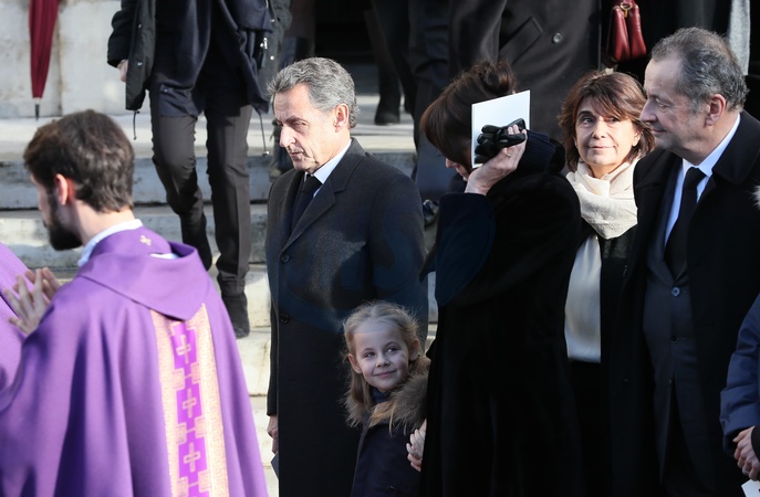 Nicolas Sarkozy i Carla Bruni z corka Giulia na pogrzebie matki Sarkozy'ego