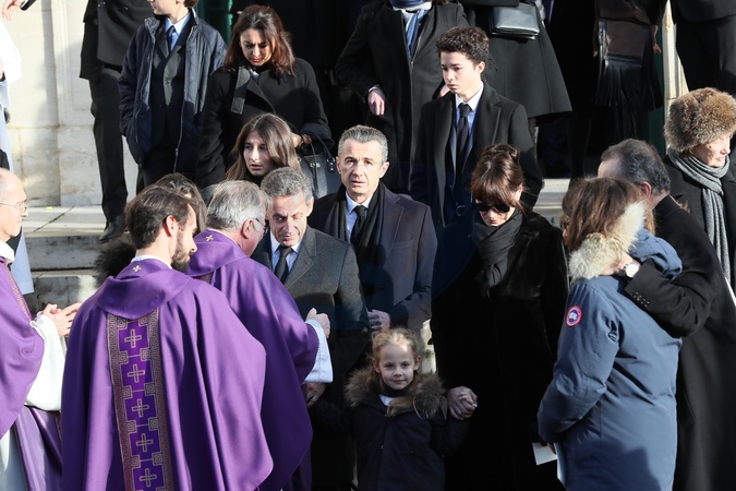 Nicolas Sarkozy i Carla Bruni z corka Giulia na pogrzebie matki Sarkozy'ego
