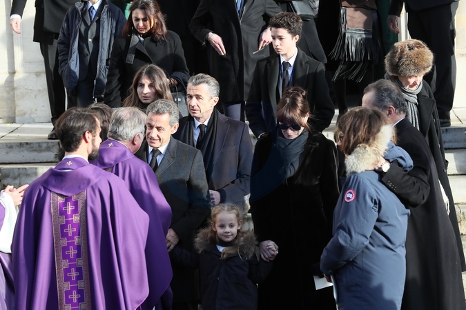 Nicolas Sarkozy i Carla Bruni z corka Giulia na pogrzebie matki Sarkozy'ego