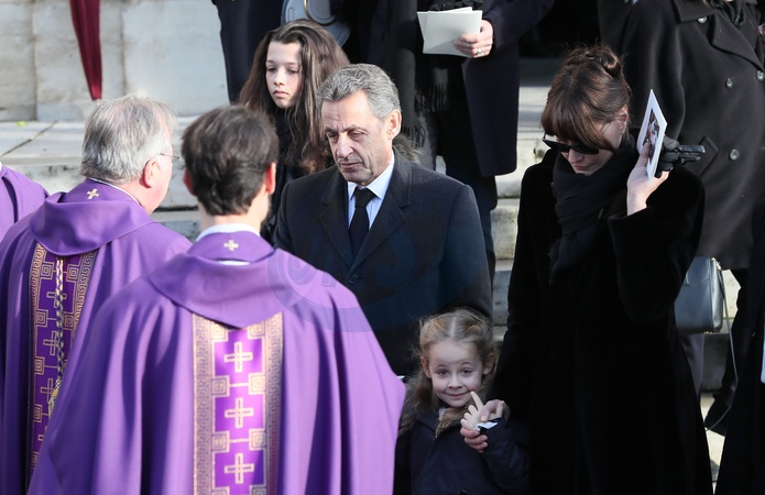 Nicolas Sarkozy i Carla Bruni z corka Giulia na pogrzebie matki Sarkozy'ego