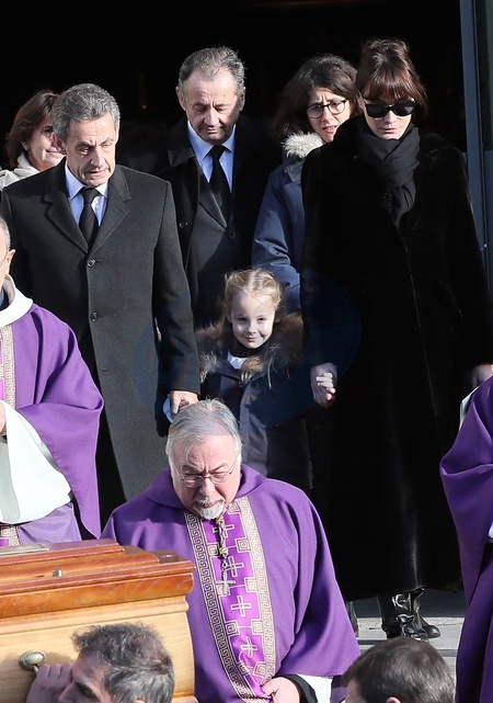 Nicolas Sarkozy i Carla Bruni z corka Giulia na pogrzebie matki Sarkozy'ego