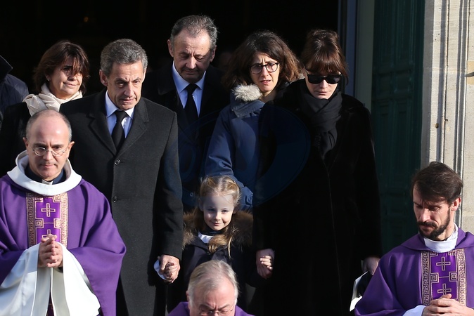 Nicolas Sarkozy i Carla Bruni z corka Giulia na pogrzebie matki Sarkozy'ego
