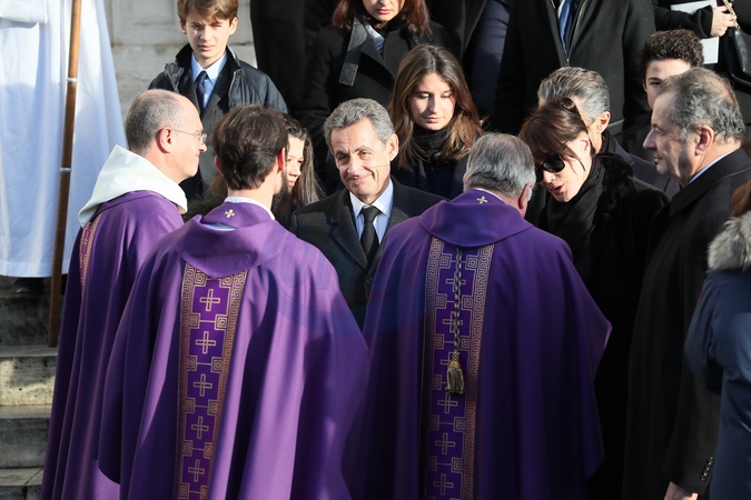 Nicolas Sarkozy i Carla Bruni z corka Giulia na pogrzebie matki Sarkozy'ego