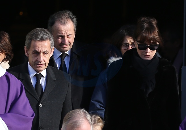 Nicolas Sarkozy i Carla Bruni z corka Giulia na pogrzebie matki Sarkozy'ego