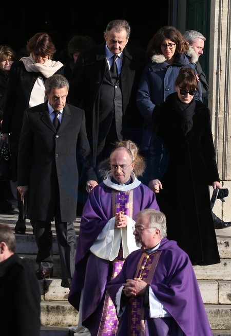 Nicolas Sarkozy i Carla Bruni z corka Giulia na pogrzebie matki Sarkozy'ego