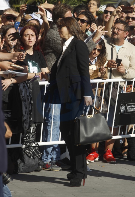 Monica Bellucci w garniturze na photocall w Saint Sebastian