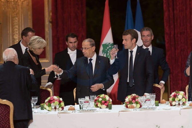 Macronowie na oficjalnej kolacji z para prezydencka Libanu