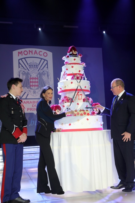 Monakijska rodzina ksiazeca na ceremonii 200. rocznicy Compagnie des Carabiniers
