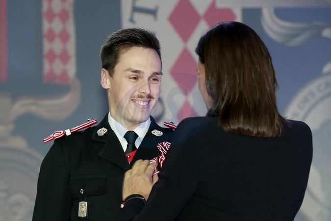 Monakijska rodzina ksiazeca na ceremonii 200. rocznicy Compagnie des Carabiniers