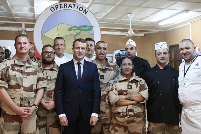 Emmanuel Macron spotkal sie z zolnierzami francuskimi w Nigrze