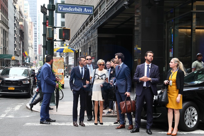 Brigitte Macron z obstawa w drodze do siedziby ONZ