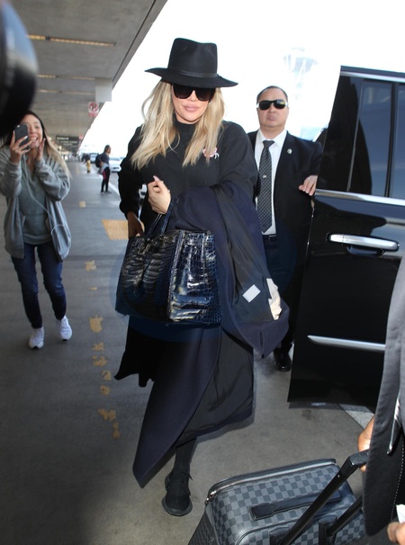 Khloe Kardashian cala na czarno i w kapeluszu na lotnisku