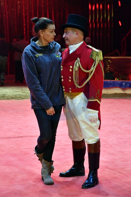 Ksiezniczka Stefania karmi zyrafe na 42. Monte-Carlo International Circus Festival