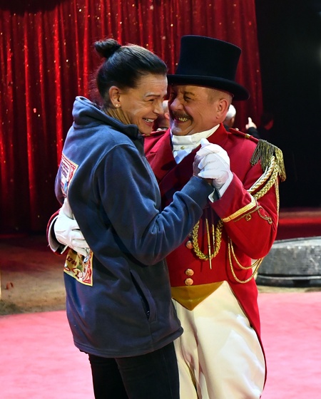 Ksiezniczka Stefania karmi zyrafe na 42. Monte-Carlo International Circus Festival