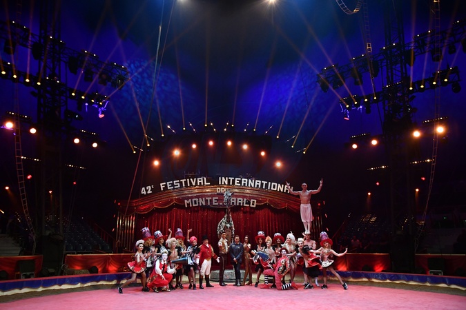 Ksiezniczka Stefania karmi zyrafe na 42. Monte-Carlo International Circus Festival