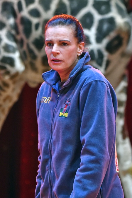 Ksiezniczka Stefania karmi zyrafe na 42. Monte-Carlo International Circus Festival