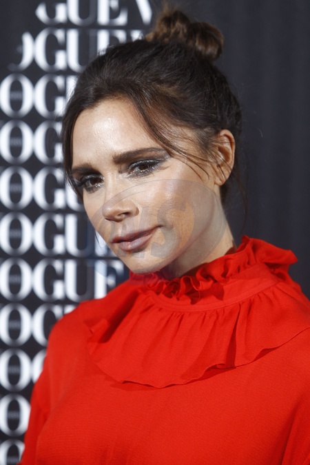Victoria Beckham w czerwonej sukni, bez stanika na imprezie Vogue w Madrycie