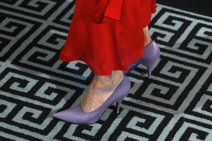 Victoria Beckham w czerwonej sukni, bez stanika na imprezie Vogue w Madrycie