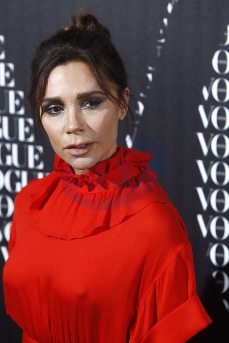 Victoria Beckham w czerwonej sukni, bez stanika na imprezie Vogue w Madrycie