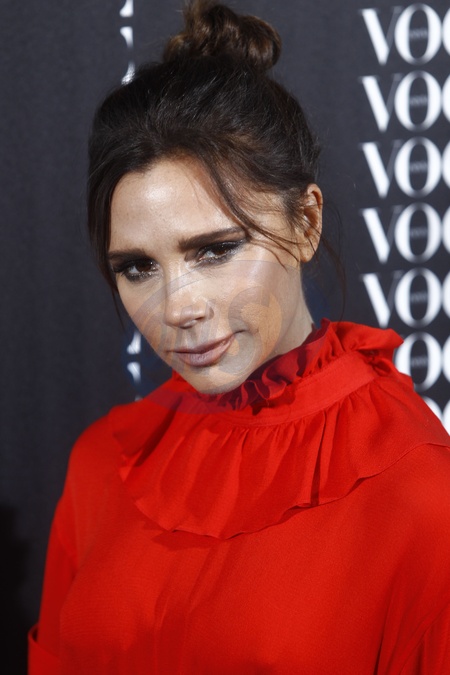 Victoria Beckham w czerwonej sukni, bez stanika na imprezie Vogue w Madrycie
