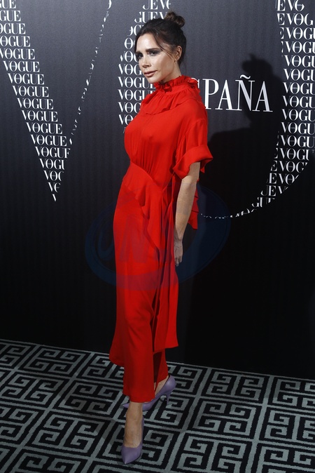 Victoria Beckham w czerwonej sukni, bez stanika na imprezie Vogue w Madrycie