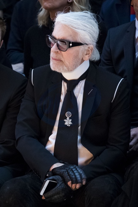 Karl Lagerfeld zarosniety na pokazie Diora