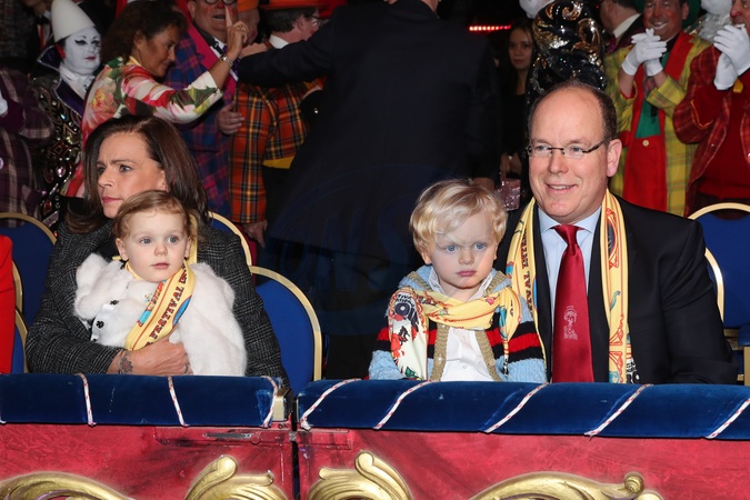 Ksiaze Albert z dziecmi i siostra na 42 Miedzynarodowym Festiwalu Cyrkowym w Monte Carlo