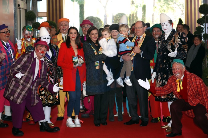 Ksiaze Albert z dziecmi i siostra na 42 Miedzynarodowym Festiwalu Cyrkowym w Monte Carlo