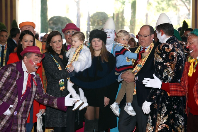 Ksiaze Albert z dziecmi i siostra na 42 Miedzynarodowym Festiwalu Cyrkowym w Monte Carlo