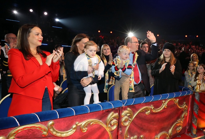 Ksiaze Albert z dziecmi i siostra na 42 Miedzynarodowym Festiwalu Cyrkowym w Monte Carlo