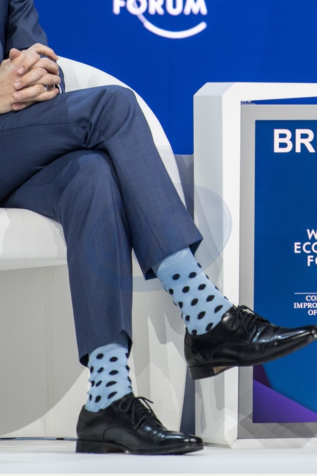 Justin Trudeau w zabawnych skarpetkach na Forum Ekonomicznym