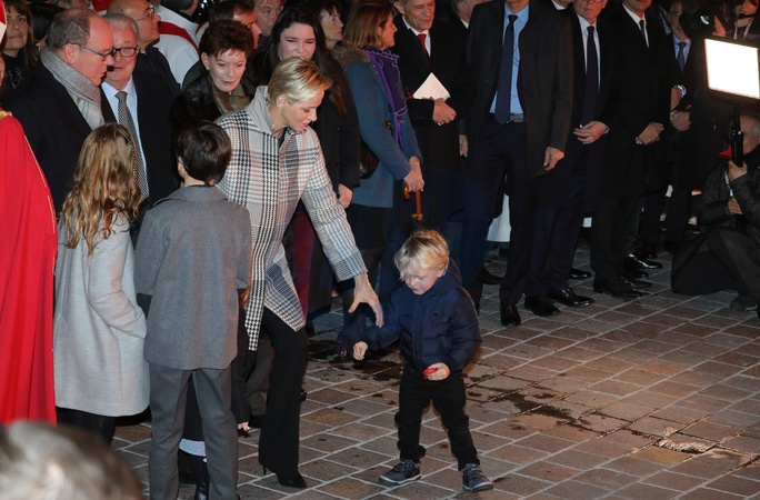 Ksiaze Albert i ksiezna Charlene z dziecmi na ceremonii - Sainte Devote