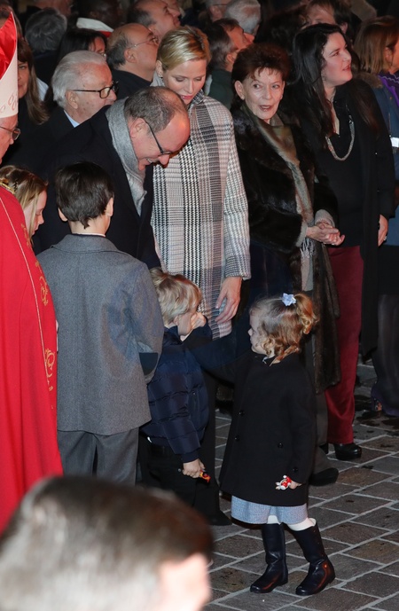 Ksiaze Albert i ksiezna Charlene z dziecmi na ceremonii - Sainte Devote