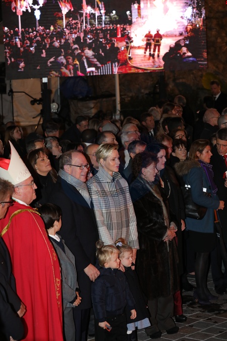 Ksiaze Albert i ksiezna Charlene z dziecmi na ceremonii - Sainte Devote