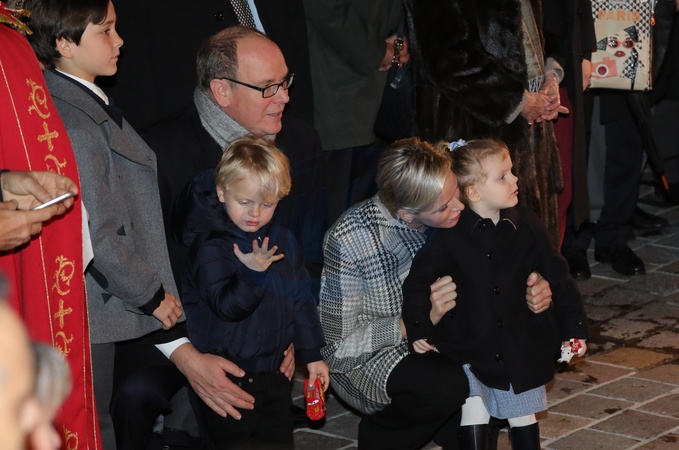 Ksiaze Albert i ksiezna Charlene z dziecmi na ceremonii - Sainte Devote