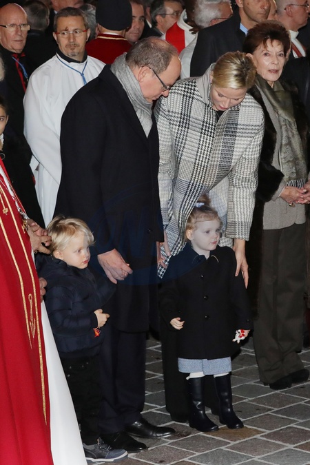 Ksiaze Albert i ksiezna Charlene z dziecmi na ceremonii - Sainte Devote