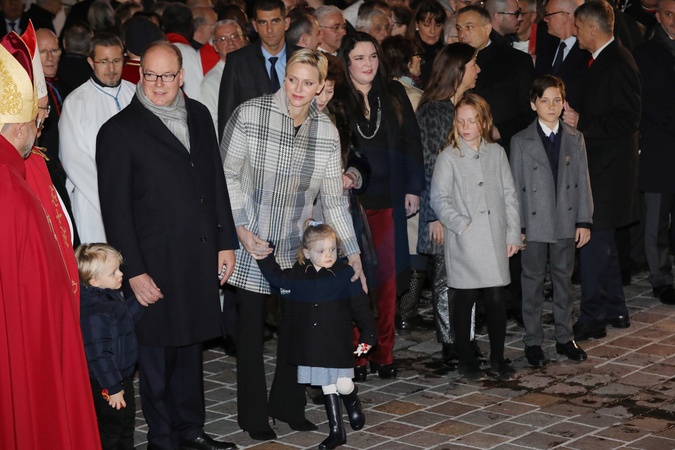 Ksiaze Albert i ksiezna Charlene z dziecmi na ceremonii - Sainte Devote