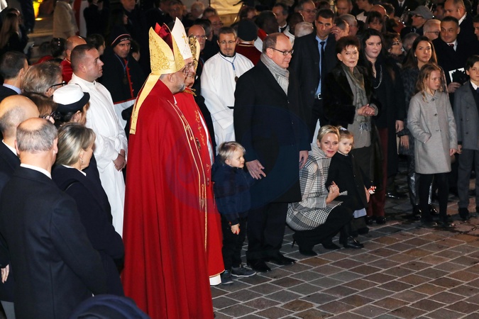 Ksiaze Albert i ksiezna Charlene z dziecmi na ceremonii - Sainte Devote