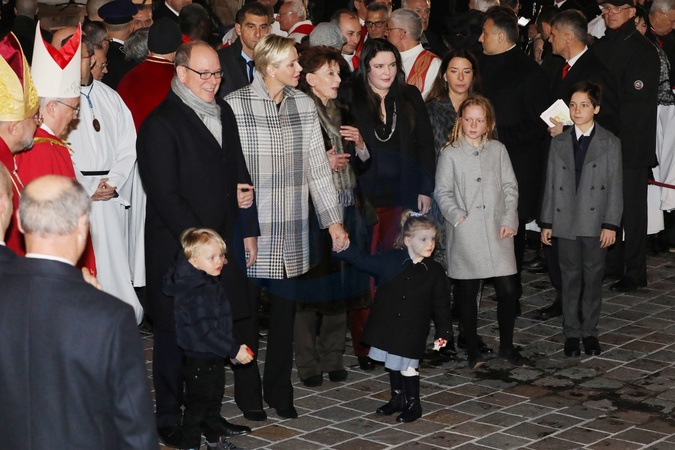 Ksiaze Albert i ksiezna Charlene z dziecmi na ceremonii - Sainte Devote